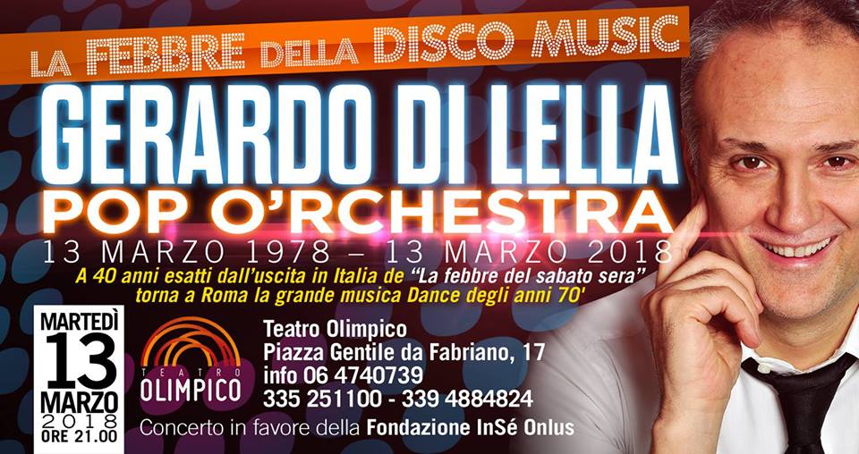 Gerardo Di Lella con i 22 musicisti della sua Pop O'rchestra e con la partecipazione di Gloria Gaynor si esibiranno in un concerto interamente dedicato alla musica DANCE degli anni 70